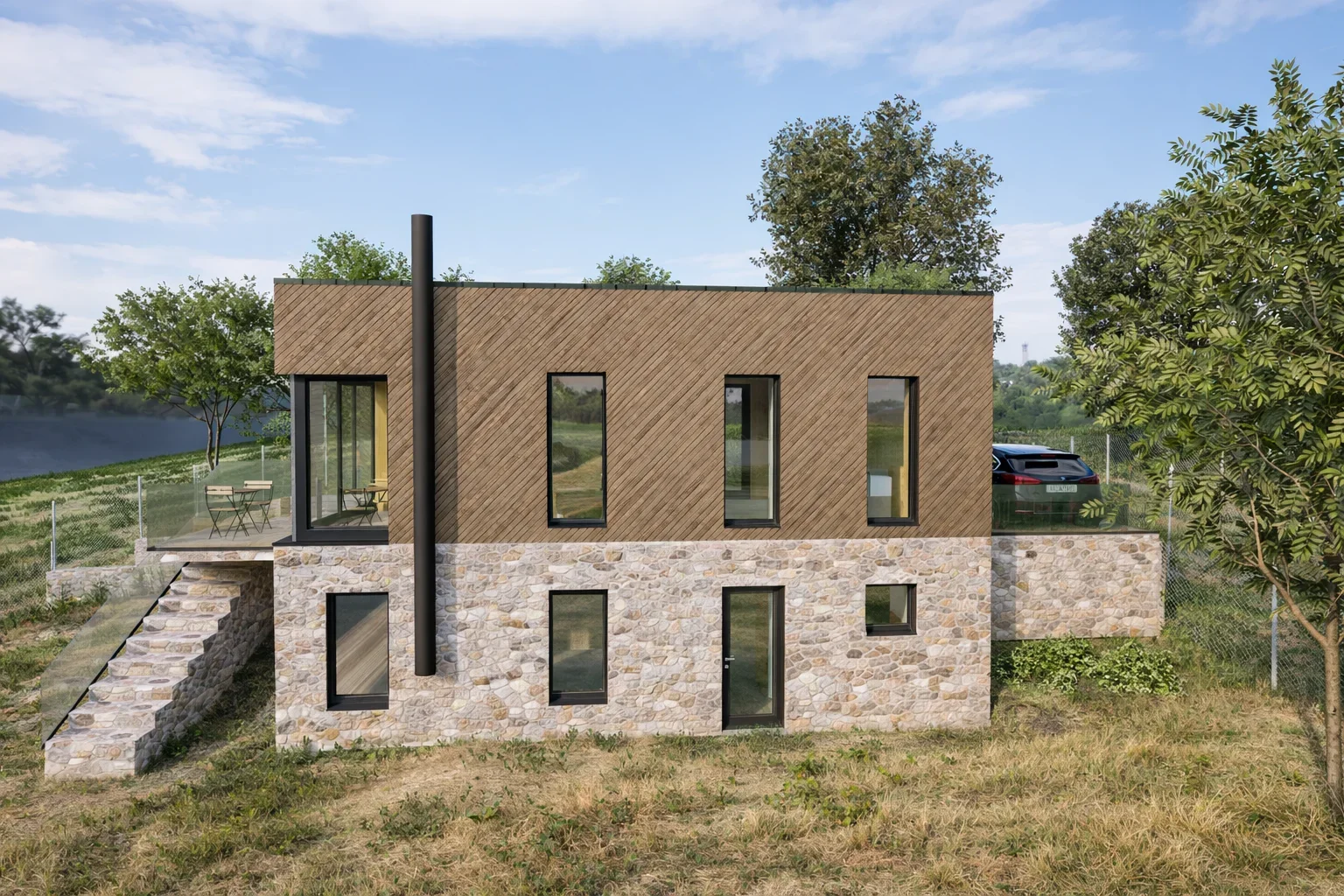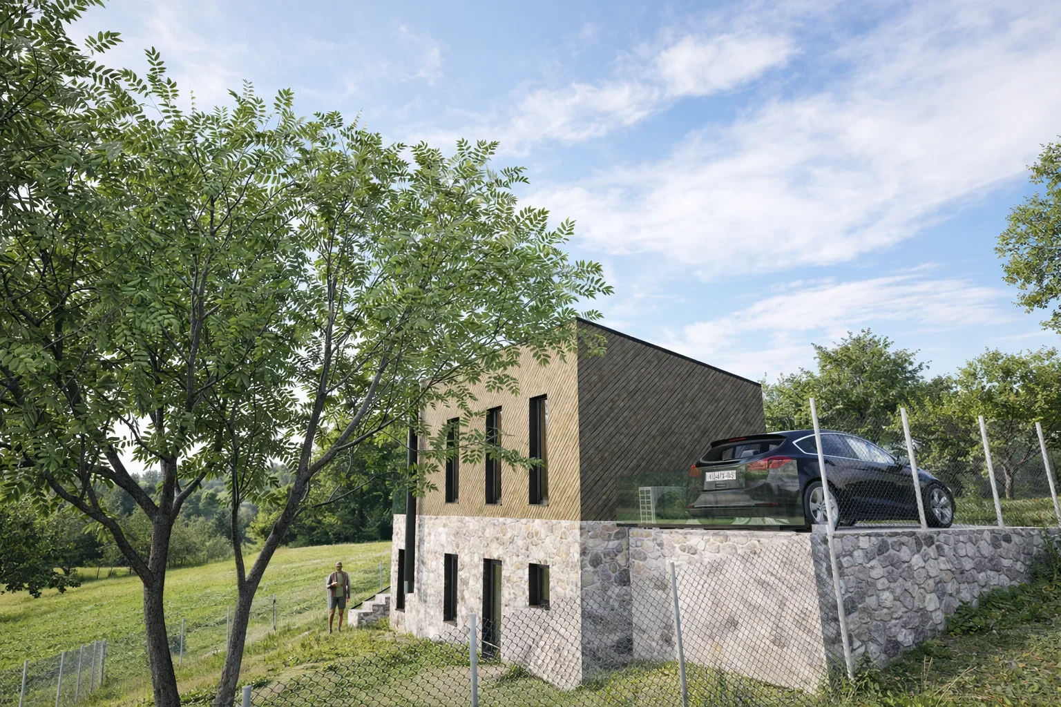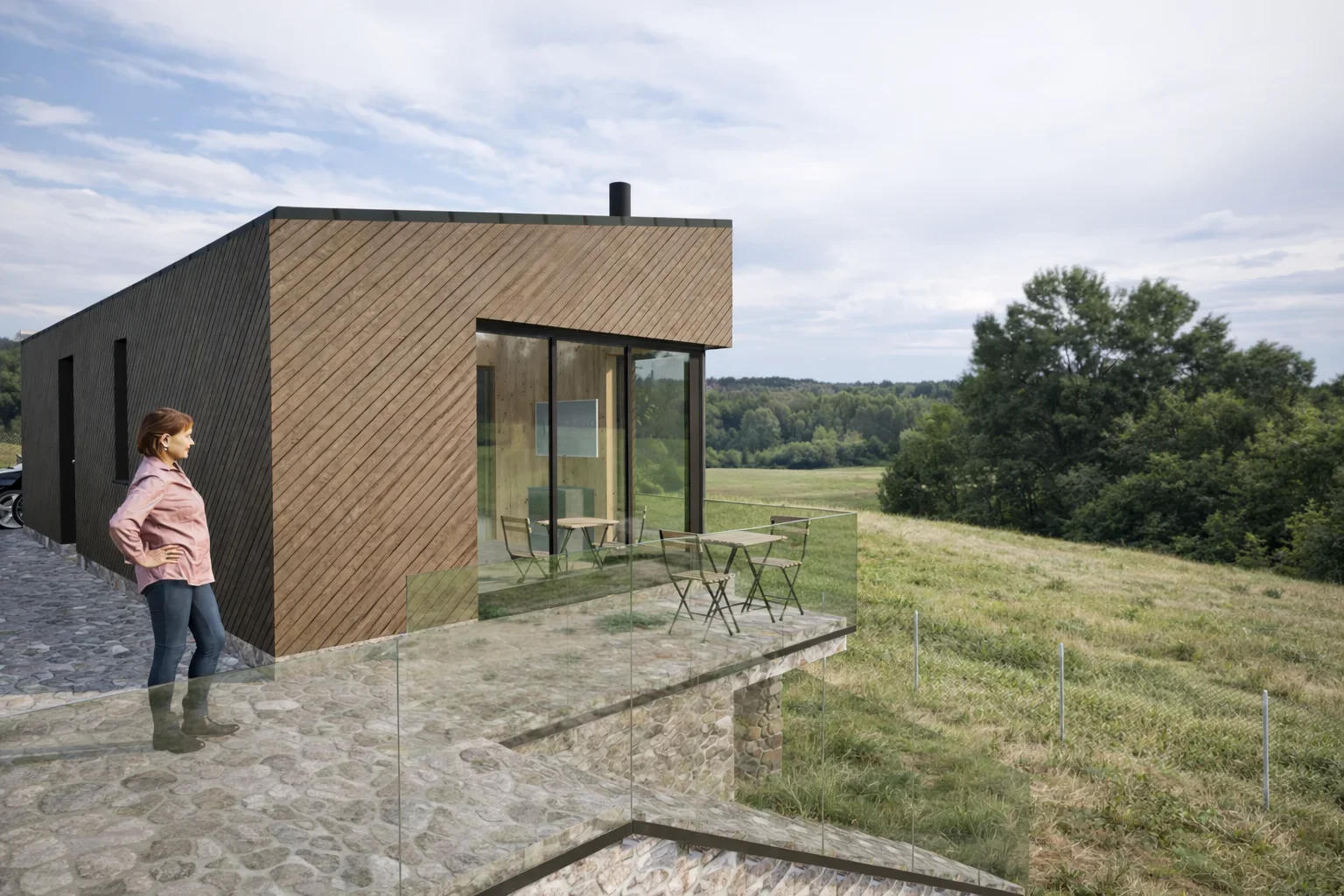 Jedná se o objekt s jedním nadzemním a jedním podzemním podlažím, s čistě obytnou funkcí pro účely rodinné rekreace na vlastním pozemku. Objekt je navržen pro 4 osoby. Novostavba objektu je řešena s maximálním ohledem na požadovanou rekreační funkci. Objekt je pravidelného obdélníkového půdorysného tvaru o rozměru 9,95 m x 4,38 m. Střecha objektu je navržena jako šikmá pultová nepochozí. Z urbanistického hlediska se jedná o samostatný objekt v rámci rozptýlené zástavby obdobně koncipovaných rekreačních objektů. Při návrhu dochází k respektování okolní zástavby co se týče rozměrových a výškových parametrů.