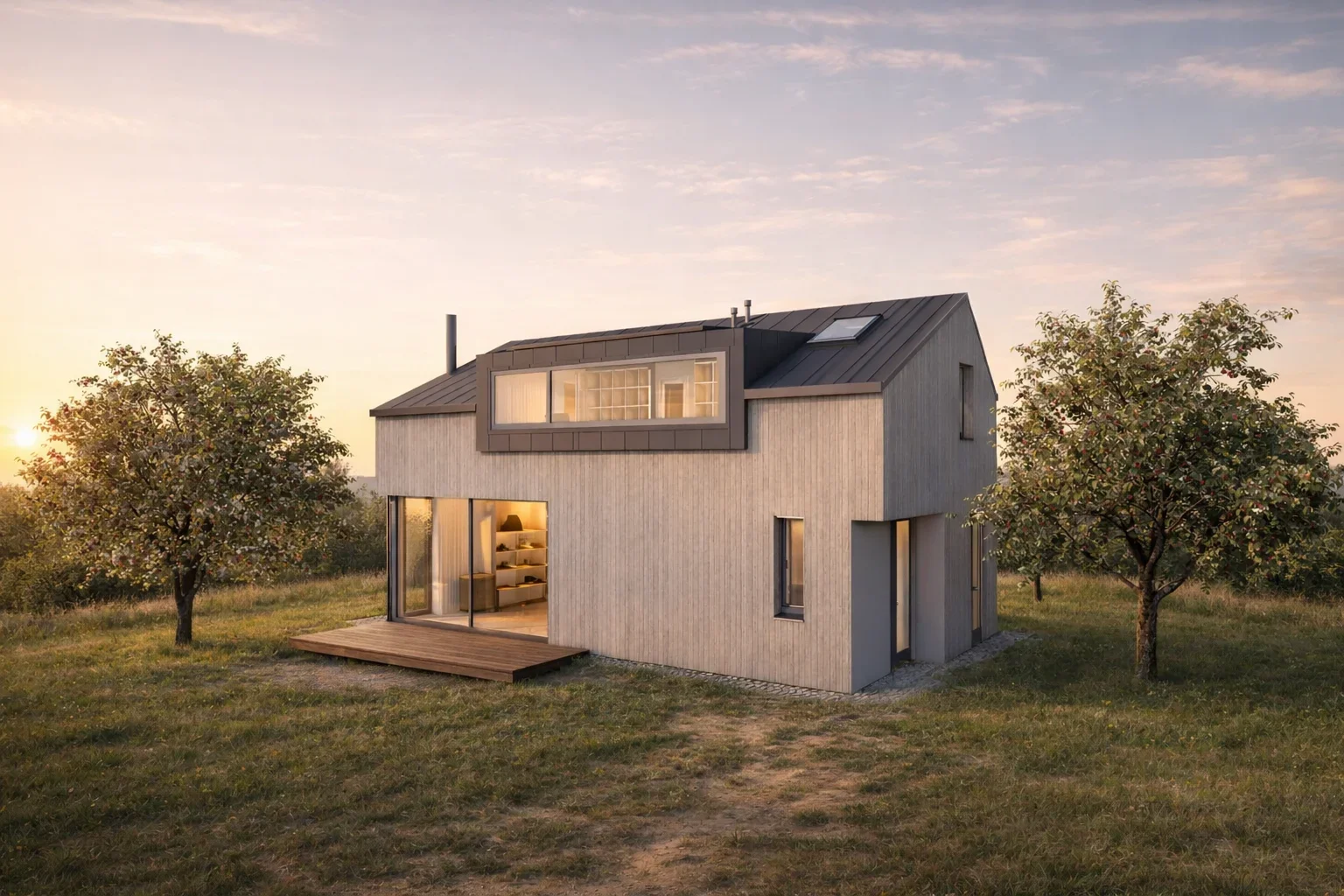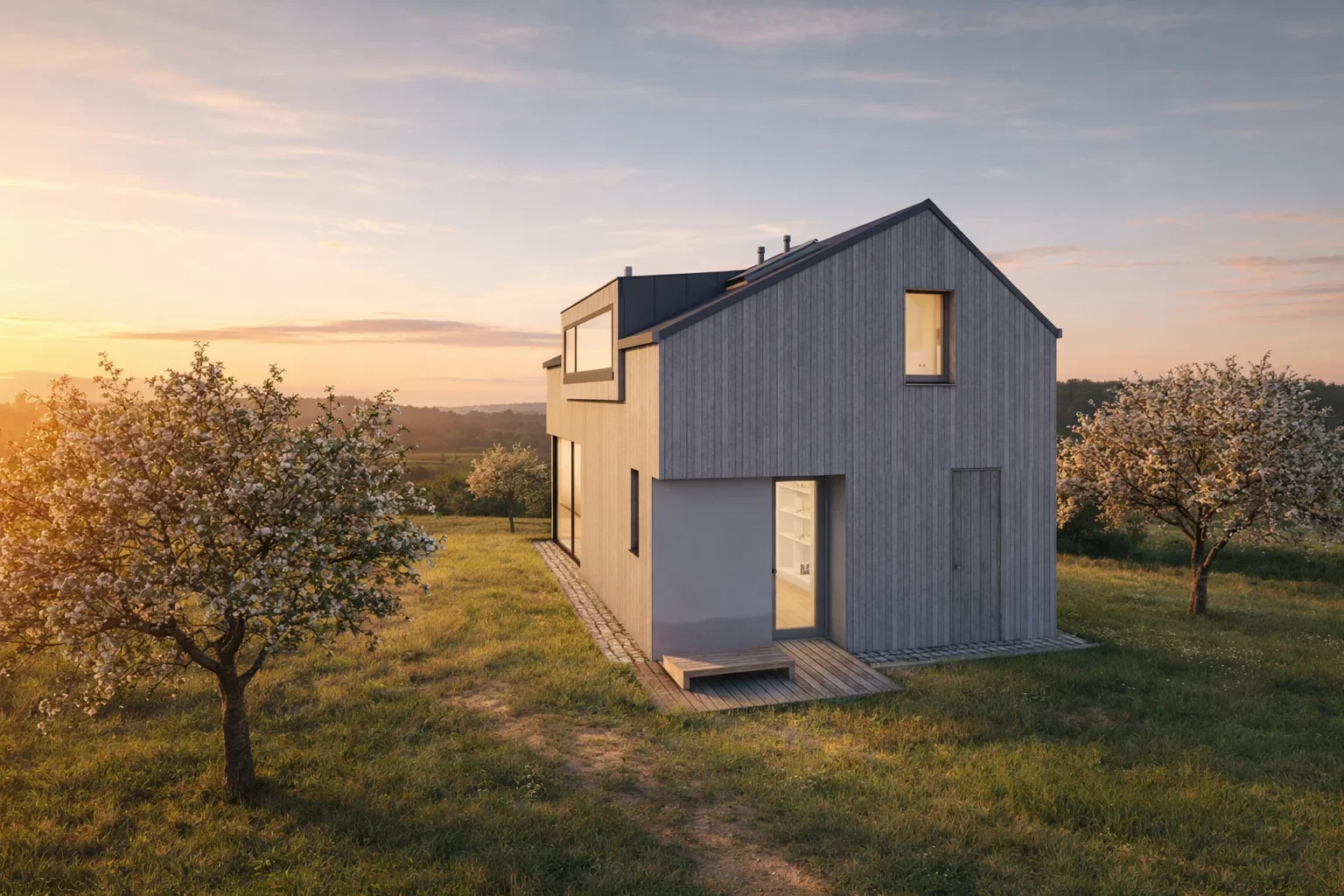 Tradičně pojednaný návrh rekreačního objektu je citlivě umístěný na řešeném pozemku v dostatečných odstupovaných vzdálenostech od okolních objektů a hranic pozemků. Nízkou mírou zastavěnosti pozemku podporuje základní principy a charakter lokality. Objekt je navržen tak, aby svým subtilním vzezřením přirozeně a citlivě zapadl, a působil na svém místě přirozeně. Materiálové řešení je z tohoto důvodu navrženo s ohledem na charakter rekreační oblasti, povrchové úpravy stěn vnějších fasád jsou obloženy svisle orientovanými prkny, která přirozeně stárnou a získávají potřebnou patinu. Okna jsou navržená v přírodní povrchové úpravě, které v místnosti obytné kuchyně umožňují plnohodnotné využití a propojení interiéru s extriérem. Objekt zastřešen sedlovou střechou s kontinuálním asymetricky umístěným hřebenem. Toto řešení umožňuje i u takto malého objemu pohodlný pohyb a zachování výškových parametrů, úroveň hřebenu střechy limitovaná výškou +6,000 m.